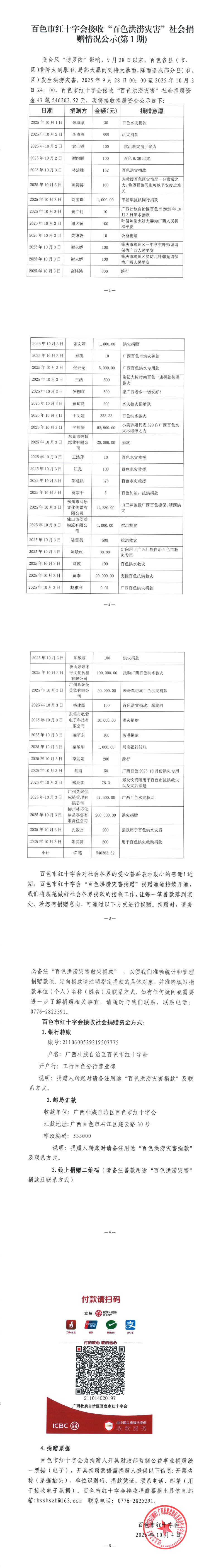 百色市红十字会接收“百色洪涝灾害”社会捐赠情况公示(第1期)